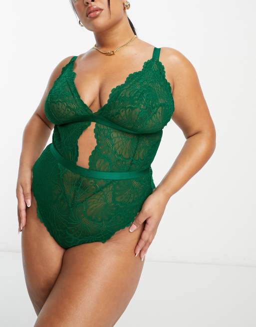 ASOS DESIGN Curve - Sienna - Body doux en dentelle - Vert forêt