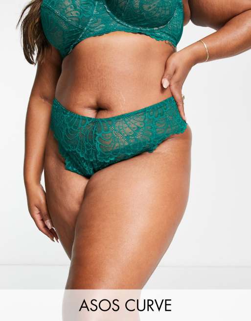 ASOS DESIGN Curve - Sienna - Culotte brésilienne taille haute en dentelle - Vert forêt