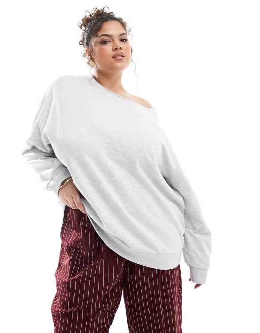 ASOS DESIGN Curve - Sweat à épaules dénudées - Glacier chiné