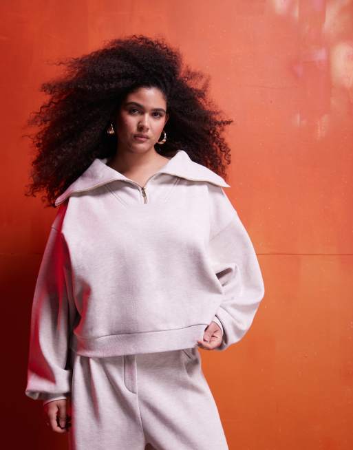 ASOS DESIGN Curve - Sweat d'ensemble épais à col zippé - Grège