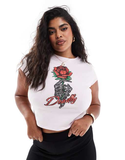ASOS DESIGN Curve - T-shirt court à imprimé rose - Rose