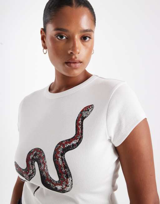 ASOS DESIGN Curve - T-shirt court à imprimé serpent - Blanc