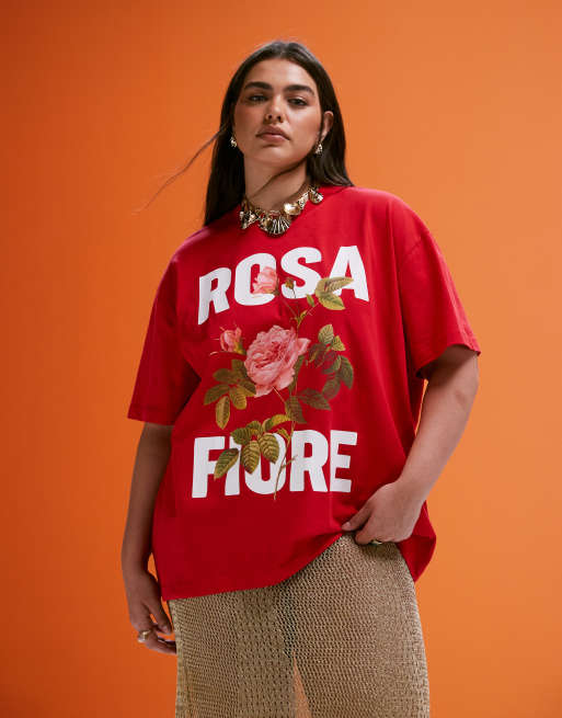 ASOS DESIGN Curve - T-shirt oversize à imprimé Rosa Fiore - Rouge