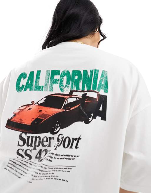 ASOS DESIGN Curve - T-shirt oversize avec imprimé voiture et inscription California - Blanc cassé