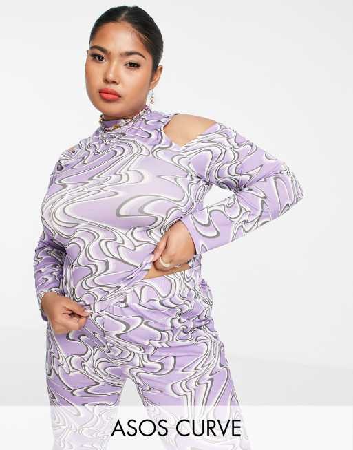 ASOS DESIGN Curve - Top avec épaules découpées et imprimé marbré linéaire