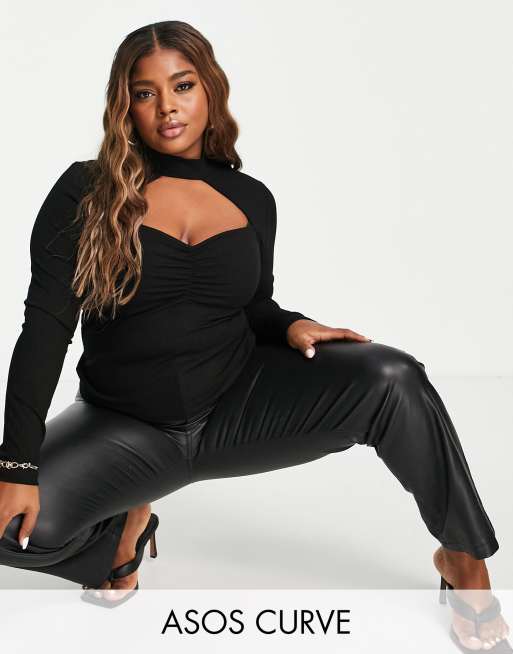 ASOS DESIGN Curve - Top côtelé torsadé sur le devant et à découpe - Noir