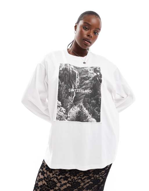 ASOS DESIGN Curve - Top coupe skateur à manches longues et motif graphique style patchwork - Crème