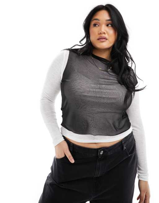 ASOS DESIGN Curve - Top manches longues avec superposition en tulle