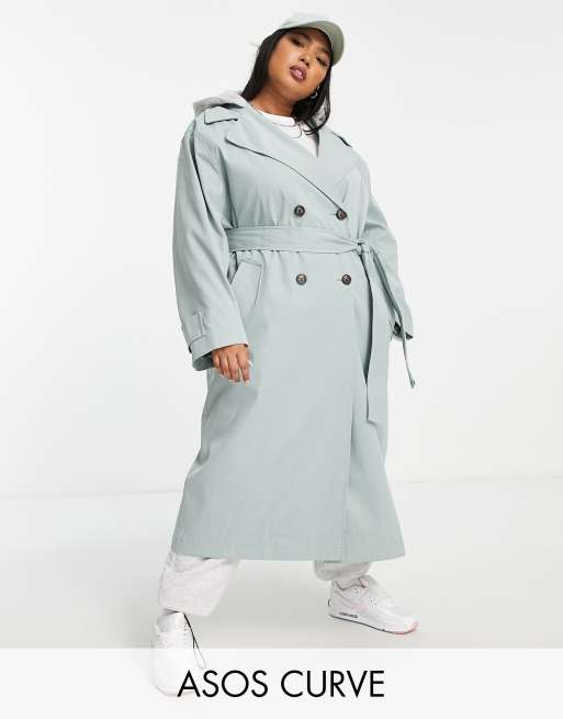 ASOS DESIGN Curve - Trench-coat avec capuche en jersey - Kaki
