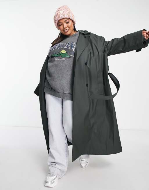ASOS DESIGN Curve - Trench-coat caoutchouté - Olive foncé