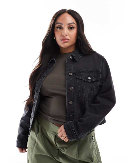 ASOS DESIGN Curve - Veste en jean style western - Noir délavé
