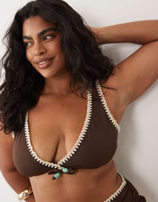 ASOS DESIGN Curve - Whitney Whip Positano - Haut de bikini triangle à bonnets couvrants - Marron