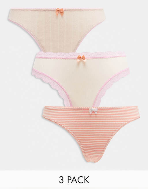 ASOS DESIGN - Lot de 3 strings fantaisie - Pêche rayé/maille pointelle/côtelé