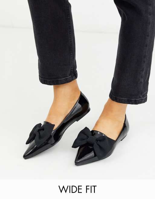 ASOS DESIGN - Lake - Ballerines plates pointure large avec bout pointu et nœud - Noir