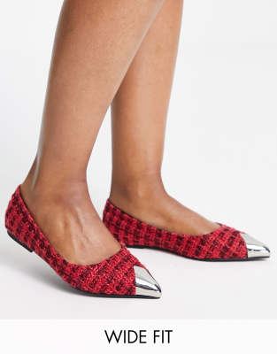 ASOS DESIGN - Lexy - Ballerines larges en tweed avec bout renforcé en métal - Rouge