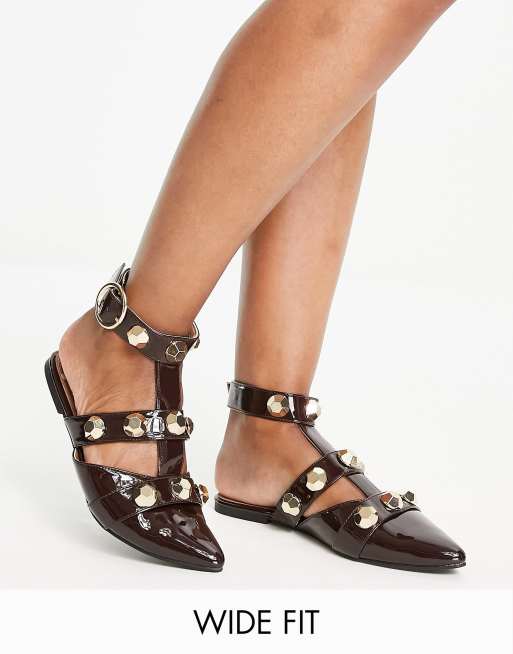 ASOS DESIGN - Lorina - Ballerines larges cloutées pointues - Marron verni