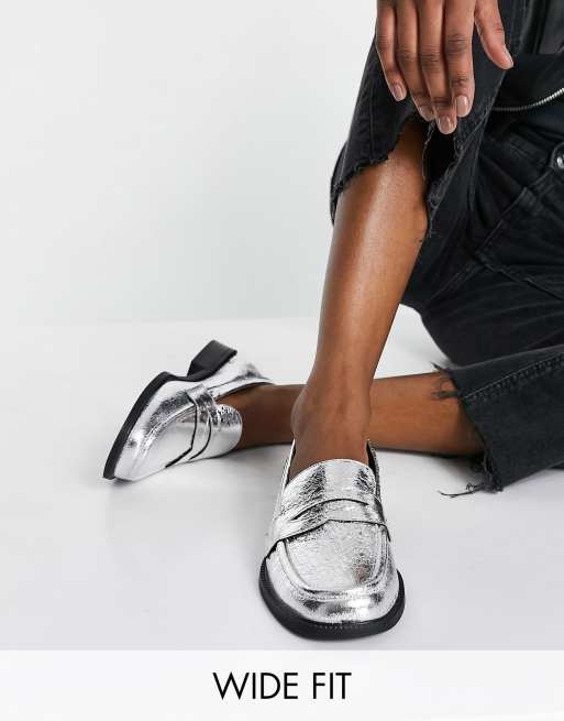 ASOS DESIGN - Mensy - Mocassins pointure large - Argenté