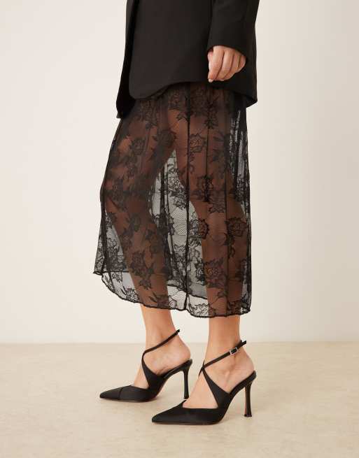 ASOS DESIGN - Porscha - Chaussures larges à talon haut en satin avec brides croisées - Noir