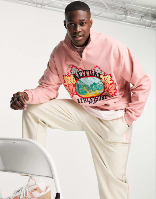 ASOS Actual - Ensemble en polaire à liserés et logo graphique nature - Rose