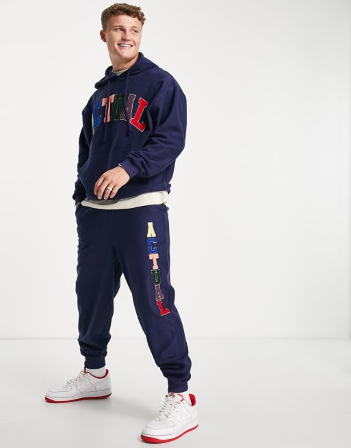 ASOS Actual - Ensemble en polaire avec appliqué logo de couleur vive - Bleu marine