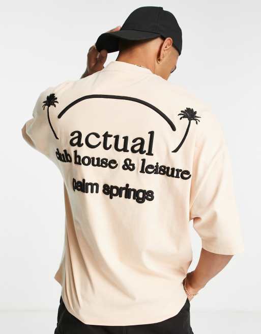 ASOS Actual - T-shirt oversize épais à logo brodé - Beige