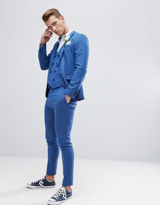 ASOS - Costume de mariage super slim micro-texturé - Bleu vif