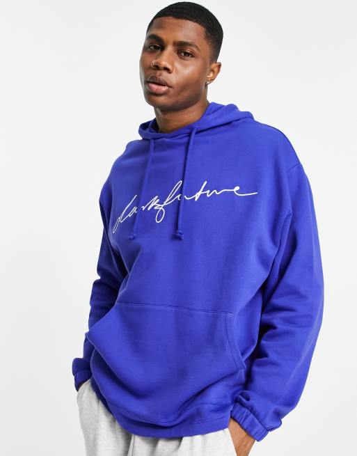 ASOS Dark Future - Sweat à capuche oversize avec logo chaîne brodé - Bleu vif