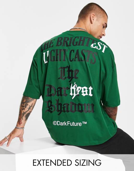 ASOS - Dark Future - T-shirt oversize avec imprimé gothique dans le dos - Vert foncé