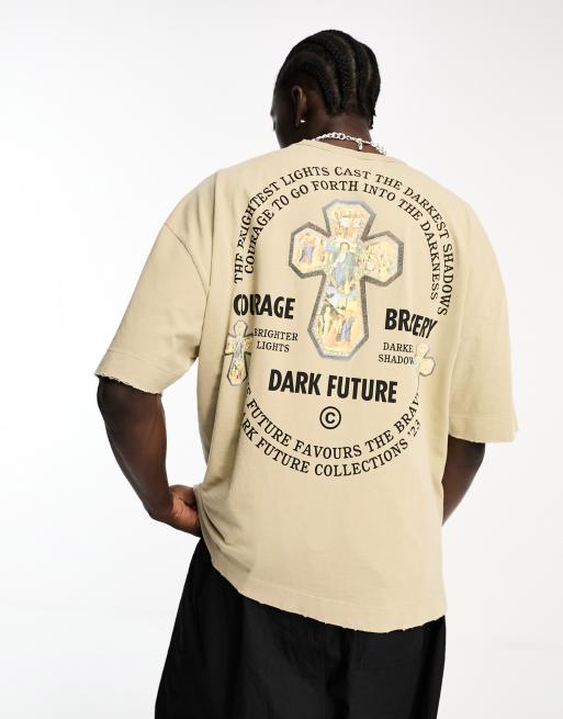 ASOS Dark Future - T-shirt oversize épais 220 g/m² imprimé grunge au dos - Gris délavé