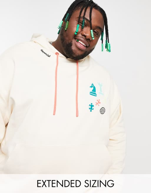 ASOS - Daysocial - Sweat à capuche oversize d'ensemble avec logo et motifs jeu de société imprimés - Blanc cassé