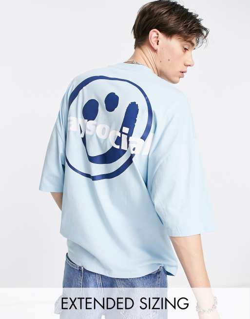 ASOS Daysocial - T-shirt oversize à imprimé smiley graphique - Bleu