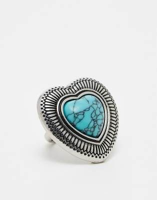 ASOS DESIGN - Bague avec cœur serti d'une pierre semi-précieuse style turquoise - Argenté