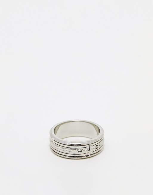 ASOS DESIGN - Bague avec détail boussole gravé - Argenté