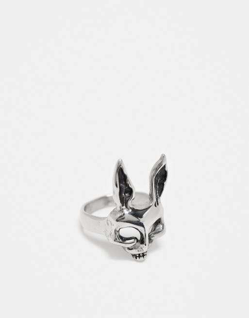 ASOS DESIGN - Bague en acier inoxydable motif lapin - Argenté