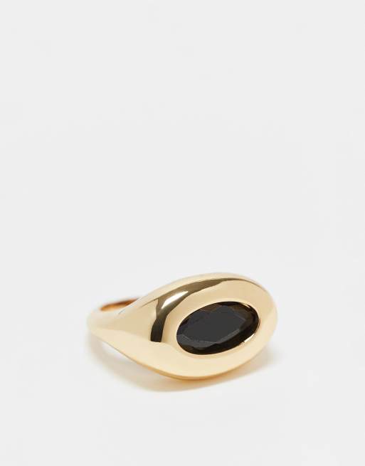 ASOS DESIGN - Bague en plaqué or 14 carats avec pierre noire