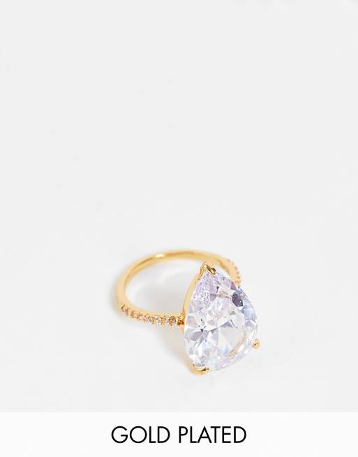 ASOS DESIGN - Bague en plaqué or 14 carats avec strass goutte d'eau