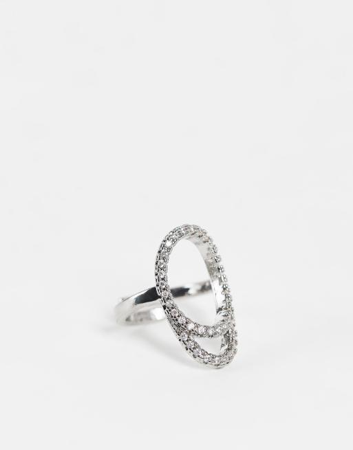 ASOS DESIGN - Bague ornée de cristaux en forme d'ongle - Argenté