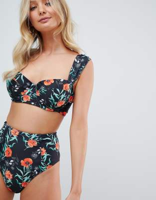 ASOS DESIGN - Bas de bikini taille haute à imprimé coquelicot