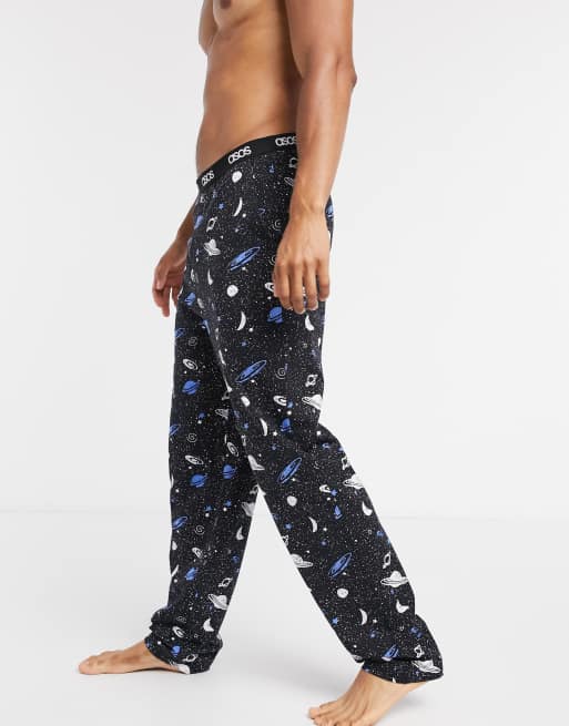 ASOS DESIGN - Bas de pyjama confort avec imprimé espace dessiné à la main et taille griffée