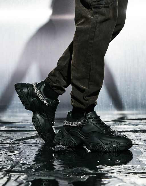 ASOS DESIGN - Baskets avec élément argenté et semelle chunky - Noir