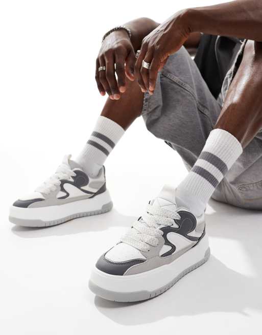 ASOS DESIGN - Baskets chunky - Gris et blanc