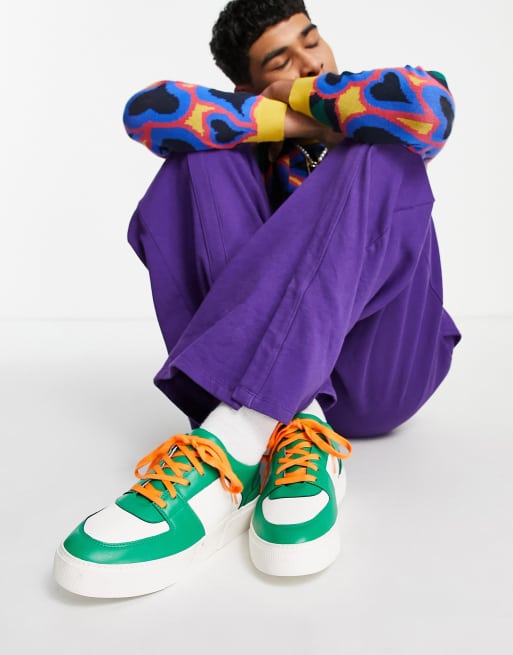 ASOS DESIGN - Baskets rétro en imitation cuir - Vert/blanc