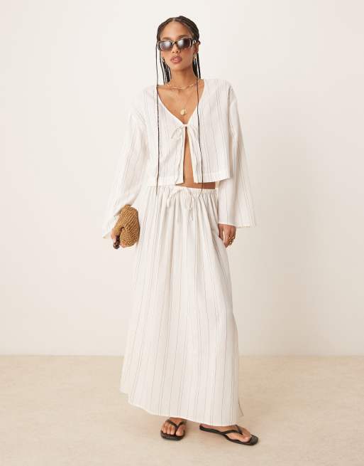 ASOS DESIGN - Belle - Jupe de plage en lin mélangé - Noir et blanc à rayures