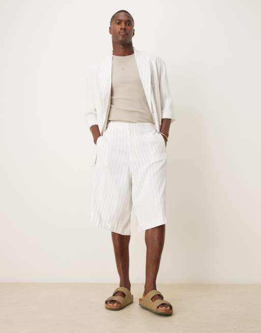 ASOS DESIGN - Bermuda de costume oversize en lin mélangé à fines rayures - Blanc