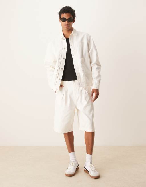 ASOS DESIGN - Bermuda d'ensemble en jean long style cargo à double pince - écru