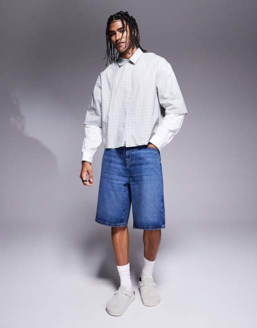 ASOS DESIGN - Bermuda en jean long - Bleu moyen délavé