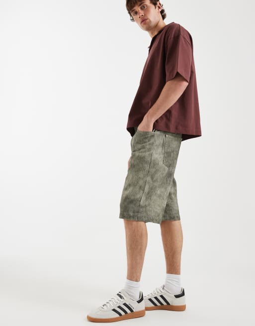 ASOS DESIGN - Bermuda long à imprimé duveteux - Kaki