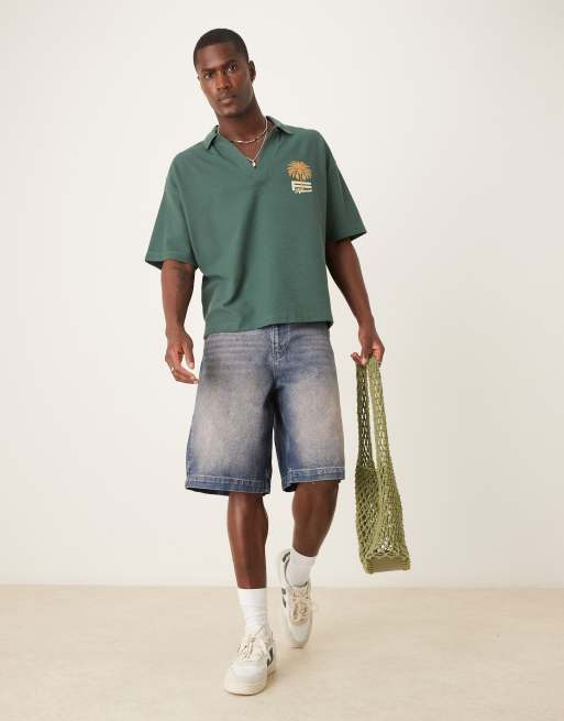ASOS DESIGN - Bermuda long en jean - Marron teinté délavé