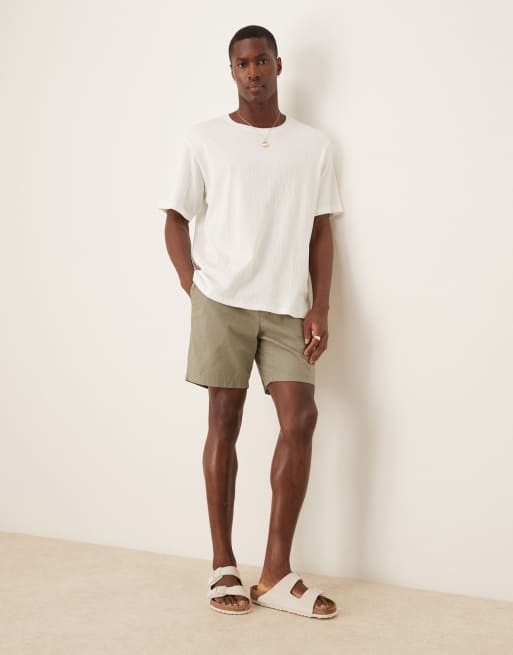 ASOS DESIGN - Bermuda mi-long coupe slim en lin mélangé - Kaki