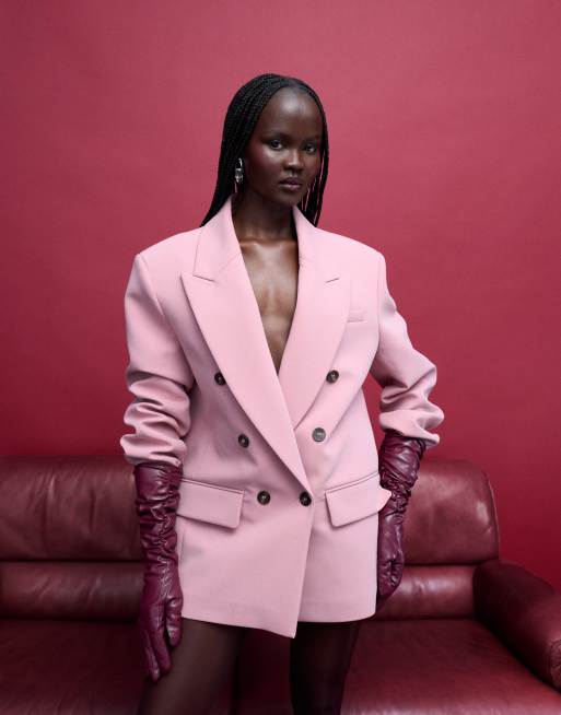 ASOS DESIGN - Blazer à double boutonnage et épaules oversize - Rose pastel